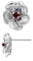 14K White Gold Single Flower Birthstone Earrings with Garnet