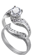 14K White Gold Cathedral Style Engagement Ring with Tapered Tips and Bead Set Diamonds (.09 ct. tw.)