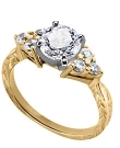 This woman's 14k white 2.7 mm band has a lovely engraved wheat pattern on three sides. It is part of a Danforth Diamond matched set and is notched to allow it to fit snugly against its engagement ring with the same engraved pattern.