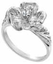 14K White Gold Single Flower Birthstone Ring with Diamond