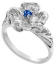 14K White Gold Single Flower Birthstone Ring with Chatham Sapphire