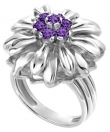 14K White Gold Large Flower Ring with Seven Amethysts