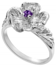 TruSilver Single Flower Birthstone Ring with Amethyst