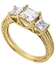 14K Yellow Gold Three Stone Ring with Leaf Pattern Engraving with Princess Side Stones(1 ct. tw.)