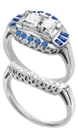 This 14k white gold 7 mm diamond engagement ring has 28 - .007 carat round stones along the sides. All diamonds have a color of G-H and clarity of SI for a total carat weight of .20 carats. You pick the 0.46 to 1.10 carat center stone from Danforth's inventory. Matching band available.