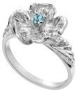 14K White Gold Single Flower Birthstone Ring with Aquamarine