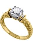 14K Yellow Gold Engraved Engagement Ring with Round Side Stones (.06 ct. tw.)