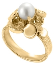 14K Yellow Gold Modern Flower Ring with White Pearl