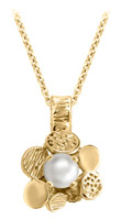 14K Yellow Gold Modern Flower Pendant with White Pearl