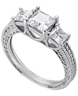 Platinum Three Stone Ring with Leaf Pattern Engraving (1 ct. tw.)