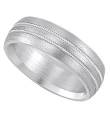 14K White Gold 7mm Half Round Comfort Fit Men's Wedding Band with Milgrain Satin Finish