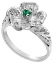 14K White Gold Single Flower Birthstone Ring with Chatham Emerald